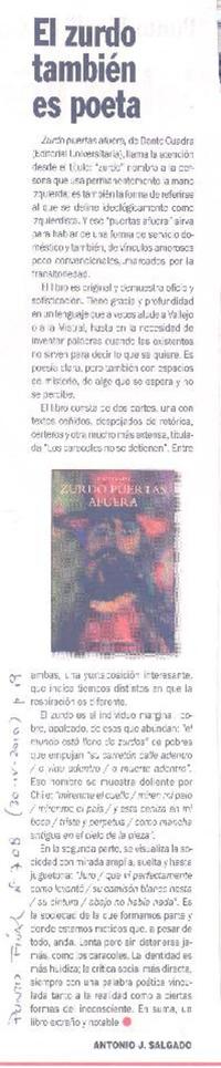 El zurdo también es poeta [artículo] / Antonio J. Salgado. Punto Final (Revista: Santiago, Chile)-- no. 708 (abr. 30, 2010) p. 19. .