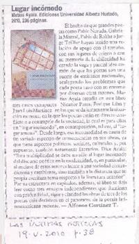 Lugar incómodo [artículo] / Alfonso Cortínez T. Las Últimas Noticias (Diario : Santiago, Chile)-- mayo 19, 2010, p. 38. .