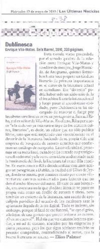 Dublinesca [artículo] / Alías Palmer. Las Últimas Noticias (Diario : Santiago, Chile)-- mayo 19, 2010, p. 38. .