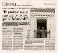 "Es más pavoroso que se sepa más de Lennon que de Balmaceda" [artículo] / Gabriela García. La Nación (Diario : Santiago, Chile)-- mayo 19, 2010, p. 27. .
