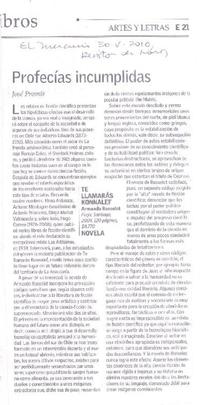 Profecías incumplidas [artículo] / José Promis. El Mercurio (Diario : Santiago, Chile)-- mayo 30, 2010, p. E21 (Revista de libros) .