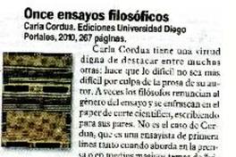 Materias: Autoras chilenas - Once ensayos filosóficos - Cordua, Carla