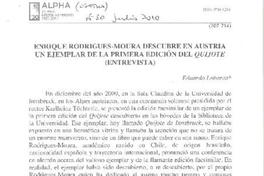 Enrique Rodrigues-Moura descubre en Austria un ejemplar de la primera edición del Quijote (entrevista) [artículo] / Eduardo Labarca. Alpha (revista : Osorno, Chile)-- no. 30 (jul. 2010) p. 207-214. .