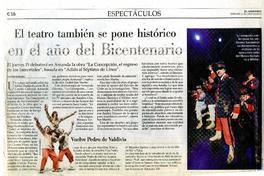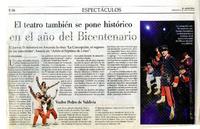 El teatro también se pone histórico en el año del bicentenario [artículo] / Eduardo Miranda. El Mercurio (Diario : Santiago, Chile)-- jul. 11, 2010, p. E16. .
