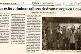 Con éxito culminan talleres de dramaturgia en Copiapó [artículo]. Diario Chañarcillo (Diario : Copiapó, Chile)-- jul. 11, 2010, p. 18. .