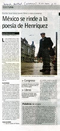 México se rinde a la poesía de Henríquez [artículo] Daniel Navarrete Alvear.