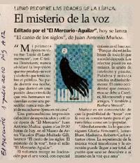 El Misterio de la voz [artículo]. El Mercurio (Diario : Santiago, Chile)-- jul. 1, 2010, p. A12. .