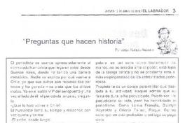Preguntas que hacen historia [artículo] / Jorge Abasolo Aravena. El Labrador (Diario : Melipilla, Chile)-- jun. 10, 2010, p. 3. .