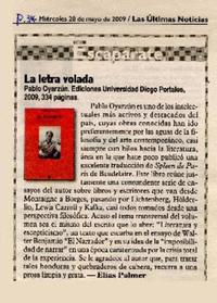 La letra volada [artículo] / Elías Palmer. Las Ultimas Noticias (Diario : Santiago, Chile)-- mayo 20, 2009, p. 34. .