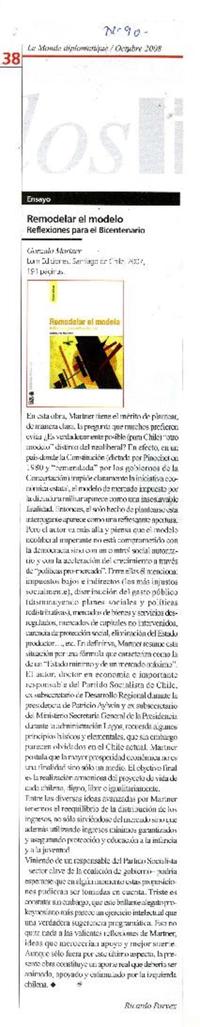 Remodelar el modelo [artículo] / Ricardo Parvex. Le Monde diplomatique (Revista : Santiago, Chile)-- no. 90 (oct., 2008) p. 38. .