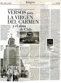 Versos para la virgen del Carmen y el alma de Chile [artículo] / Pedro Morandé. El Mercurio (Diario : Santiago, Chile)-- mar. 27, 2011, p. E10 .