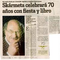 Skármeta celebrará 70 años con fiesta y libro [artículo]. Crónica (Diario : Chillán, Chile)-- dic. 15, 2010, p. 21 .