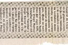 Don Diego Barros Arana [artículo] / Héctor González Valenzuela. El Rancagüino (Diario : Rancagua, Chile)-- nov. 4, 2010, p. 4 .