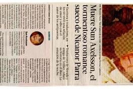 Muere Sun Axelsson, el tormentoso romance sueco de Nicanor Parra [artículo] Andrés Gómez Bravo.