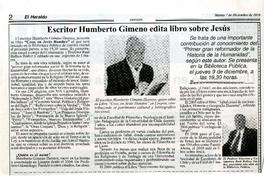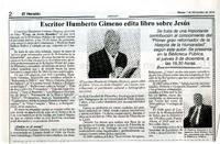 Escritor Humberto Gimeno edita libro sobre Jesús [artículo] El Heraldo (Diario : Linares, Chile)-- dic. 7, 2010, p. 2 .