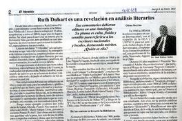 Ruth Duhart es una revelación en análisis literarios [artículo] / Raúl Balboa Ibáñez. El Heraldo (Diario : Linares, Chile)-- ene. 6, 2011, p. 2 .