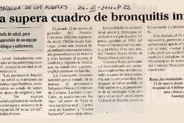 El poeta supera cuadro de bronquitis infecciosa [artículo] La Tribuna (Diario : Los Ángeles, Chile)-- mar. 24, 2011, p. 22 .