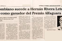 Colombiano sucede a Hernán Rivera Letelier como ganador del premio Alfaguara [artículo].