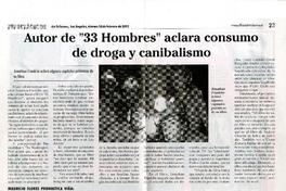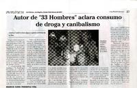Autor de "33 hombres" aclara consumo de droga y canibalismo [artículo] La Tribuna (Diario : Los Ángeles, Chile)-- feb. 18, 2011, p. 23 .