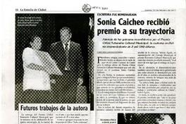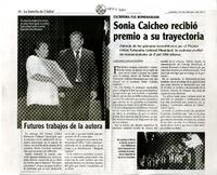 Sonia Caicheo recibió premio a su trayectoria [artículo] Carolina Larenas Faúndez.