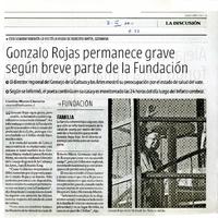 Gonzalo Rojas permanece grave según breve parte de la Fundación [artículo] Carolina Marcos Chavarría.