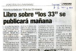 Libro sobre los 33 se publicará mañana [artículo] El Diario de Atacama (Diario : Copiapó, Chile)-- feb. 8, 2011, p. A22 .
