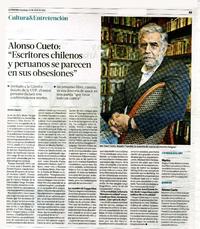 "Escritores chilenos y peruanos se parecen en sus obsesiones" (entrevista) [artículo] / Javier García. La Tercera (Diario : Santiago, Chile)-- abr. 24, 2011, p. 53 .