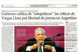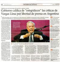 Gobierno califica de estupideces las críticas de Vargas Llosa por libertad de prensa en Argentina [artículo] El Mercurio (Diario : Santiago, Chile)-- abr. 22, 2011, P. A4 .