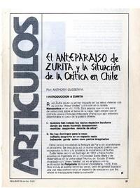 El anteparaíso de Zurita y la situación de la crítica en Chile [artículo] / Anthony Cussen M. Realidad (Revista : Chile)-- dic. 1982, p. 21-28. .