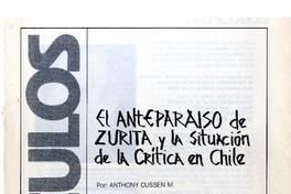El anteparaíso de Zurita y la situación de la crítica en Chile [artículo] Anthony Cussen M.