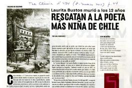 Rescatan a la poeta más niña de Chile [artículo] / Ana Rodríguez. The Clinic (Revista : Santiago, Chile)-- no. 434 (mar. 8, 2012) p. 24. .