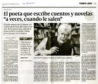 El poeta que escribe cuentos y novelas "a veces, cuando le salen" [artículo] Juan Carlos Pizarro A.