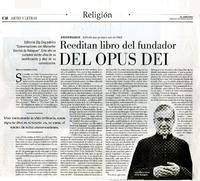 Reeditan libro del fundador del Opus Dei [artículo] Braulio Fernández Biggs.