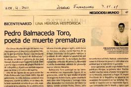 Pedro Balmaceda Toro, poeta de muerte prematura [artículo] / Alejandro San Francisco. El Diario Financiero (Diario : Santiago, Chile)-- nov. 4, 2011, p. 47. .