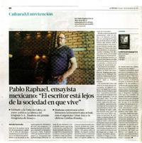 "El escritor está lejos de la sociedad en que vive" [artículo] / Marcela Fuentealba. La Tercera (Diario : Santiago, Chile)-- nov. 4, 2011, p. 60. .
