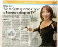 "Me molesta que con el sexo se busque rating en TV" (entrevista) [artículo] / Sebastián Grant del Río. El Sur (Diario : Concepción, Chile)-- abr. 21, 2012, p. 24. .
