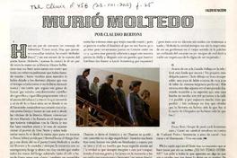 Murió Moltedo [artículo] / Claudio Bertoni. The Clinic (Revista : Santiago, Chile)-- no. 458 (ago. 23, 2012) p. 25. .