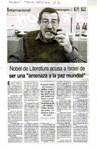 Nobel de Literatura acusa a Israel de ser una "amenaza a la paz mundial" [artículo].