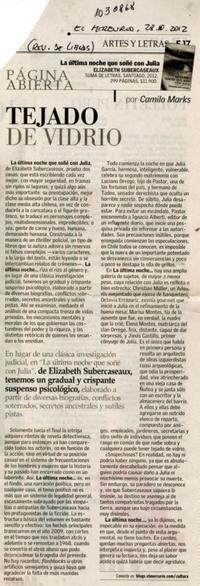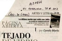 Tejado de vidrio [artículo] Camilo Marks. El Mercurio ( Santiago : Chile)-- oct. 28, 2012, p. E17 (Revista de libros .