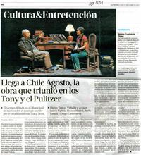 Llega a Chile Agosto, la obra que triunfó en los Tony y el Pulitzer [artículo] / Francisca Babul. La Tercera (Diario : Santiago, Chile)-- oct. 29, 2012, p. 60. .
