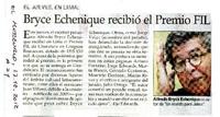 Bryce Echenique recibió el premio FIL. [artículo] El Mercurio (Diario : Santiago, Chile)-- oct. 27, 2012, p. A21. .