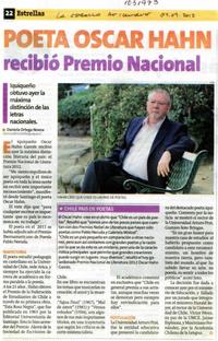 Poeta Oscar Hahn recibió Premio Nacional [artículo] La Estrella de Iquique (Diario : Iquique, Chile)-- sep., 04, 2012, p. 22 .