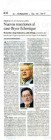 Nuevas reacciones al caso Bryce Echenique. [artículo] Juan Ignacio Rodríguez Medina El Mercurio (Diario : Santiago, Chile)-- oct., 26,2012, p. A14 .