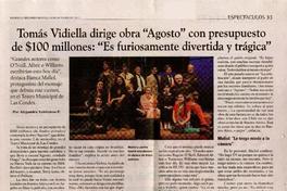 Tomás Vidiella dirige obra "Agosto" con presupuesto de $100 millones: "Es furiosamente divertida y trágica". [artículo] Alejandra Valdivieso P. La Segunda (Diario : Santiago, Chile)-- oct., 23, 2012, p. 33 .