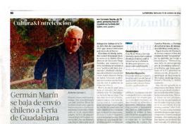 Germán Marín se baja de envío chileno a Feria de Guadalajara. [artículo] Roberto Careaga C. La Tercera (Diario : Santiago, Chile)-- oct., 31, 2012, p. 52 .