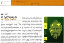 La cabeza perdida de Philip K. Dick. [artículo] Rodrigo Fresan Qué Pasa (Revista : Santiago, Chile)-- nº 2157 (ago. 2012), p. 76 .
