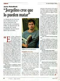 Javier Rebolledo "Jorgelino cree que lo pueden matar" [artículo] Mario Rodríguez Ordenes Ercilla (Revista : Santiago, Chile)-- nº 3461 (oct. 2012), p. 62 .