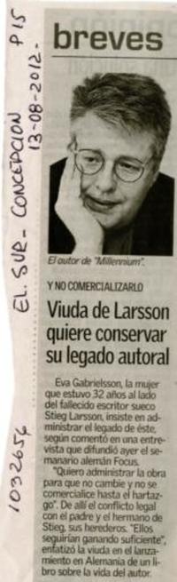 Viuda de Larsson quiere conservar su legado autoral [artículo] El Sur (Diario : Concepción, Chile)-- ago. 12, 2012, p. 10 .