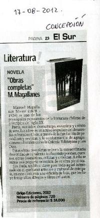 Obras completas [artículo] El Sur (Diario : Concepción, Chile)-- ago. 17, 2012, p. 23 .