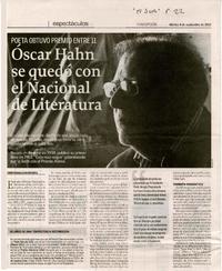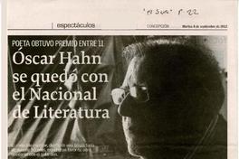Oscar Hahn se quedó con el Nacional de Literatura [artículo] El Sur (Diario : Concepción, Chile)-- sep. 04, 2012, p. 22 .